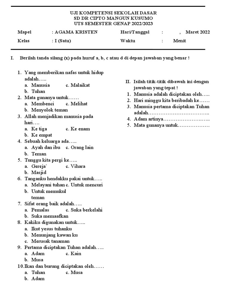 Bagian 1: Pilihan Ganda – Pilih Jawaban yang Tepat!